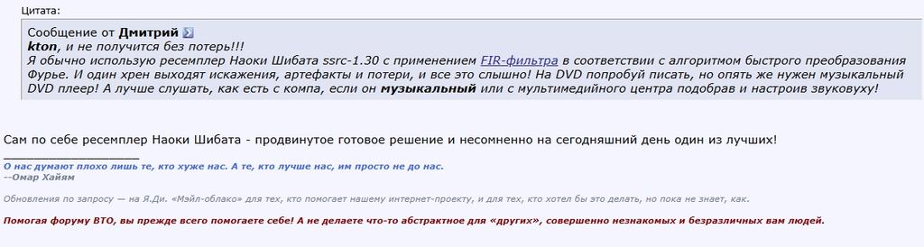 Почему я убил разделы "даунсэмплинг от так называемого сибиряка". Сибиряк скачивал на рутрекере оцифровки в высоком разрешении резал и тупо даунсемплинг в 16 на 44 ссылаясь на то что у него якобы винтажный CD проигрыватель