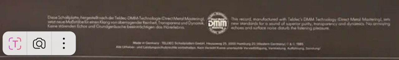 Немецкое издание 1985 года (TELDEC - 6.26235) — виниловый LP (180 г, чёрный винил), выпущенный TELDEC Schallplatten GmbH. Прессинг выполнен с использованием технологии Direct Metal Mastering (DMM) для высокой чёткости звука, что делает его коллекционно ценным. Мастеринг проведён в Teldec-Studio, Берлин, с акцентом на чистоту синтезаторов и вокала. Оцифровка от 12.10.25 сохраняет оригинальную динамику и тёплую аналоговую текстуру, обеспечивая качество 24/192. Винил в состоянии Near Mint (NM) оценивается на Discogs в диапазоне €20–50. Издание включает вкладыш с текстами песен и фотографиями.