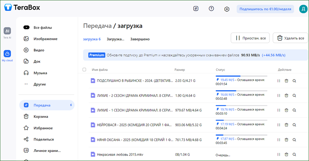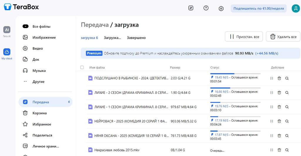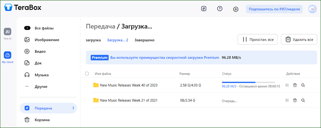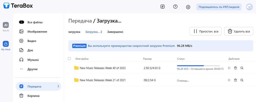 ТЕРАБОКС, Скорость заливки на Терабокс 96 мегабайт в сек