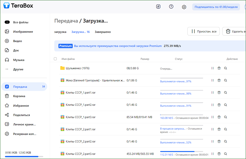 Это загрузка на терабокс 2,5 гигабит интернет